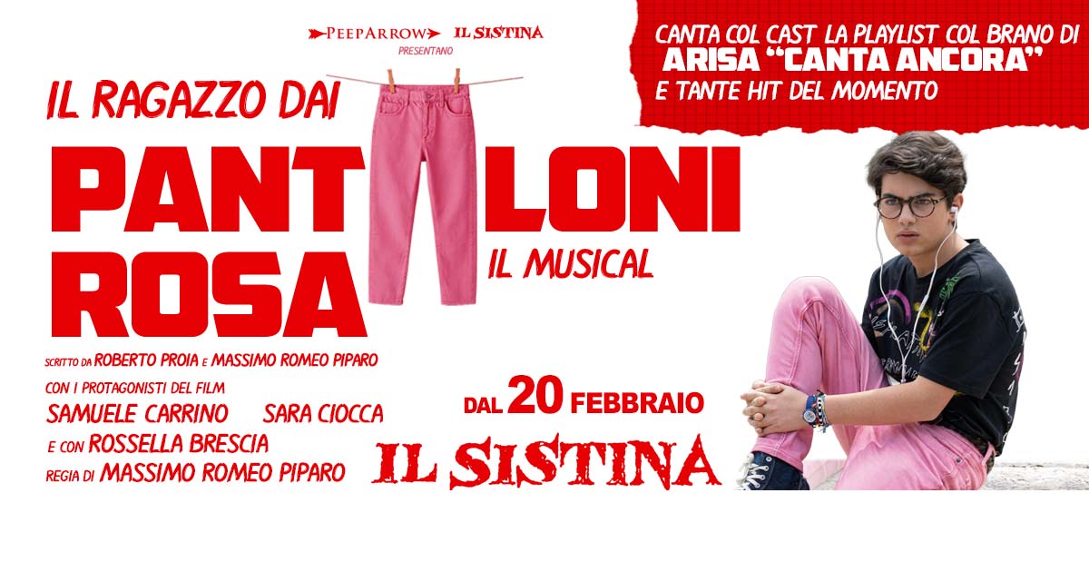 La storia di Andrea Spezzacatena, quindicenne vittima di bullismo e cyberbullismo, arriva sul palco del Teatro Sistina dal 20 febbraio 26 con il musical Il ragazzo dai pantaloni rosa.Lo spettacolo è firmato da Massimo Romeo Piparo e adattato insieme a Roberto Proia, sceneggiatore dell’omonimo film e nominato ai David di Donatello 2025.Samuele Carrino interpreta Andrea, affiancato da Sara Ciocca nel ruolo dell’amica e da Rossella Brescia nei panni della madre.La colonna sonora, con brani contemporanei amati dagli adolescenti, include Canta ancora di Arisa, vincitrice dei Nastri d’Argento 2025.Il musical racconta con emozione e delicatezza una vicenda che riguarda ragazzi, famiglie ed educatori.Le battute, la musica e la scenografia creano un’esperienza intensa e coinvolgente.Lo spettacolo denuncia il bullismo tra i giovani senza perdere la forza emotiva della storia.Attraverso l’arte e la musica, invita il pubblico a riflettere e a guardare al futuro con speranza e fiducia.Ogni scena unisce sensibilità e intrattenimento, rendendo il musical un appuntamento teatrale unico.Il racconto di Andrea diventa così un messaggio universale di resilienza, coraggio e consapevolezza.Con la sua forza narrativa, il musical emoziona e ispira, facendo riflettere spettatori di tutte le età.Il ragazzo dai pantaloni rosa è un’esperienza teatrale che coniuga bellezza, musica e impegno sociale.Un’opera che trasforma il dolore in arte, e la storia di un ragazzo in un invito a non arrendersi.